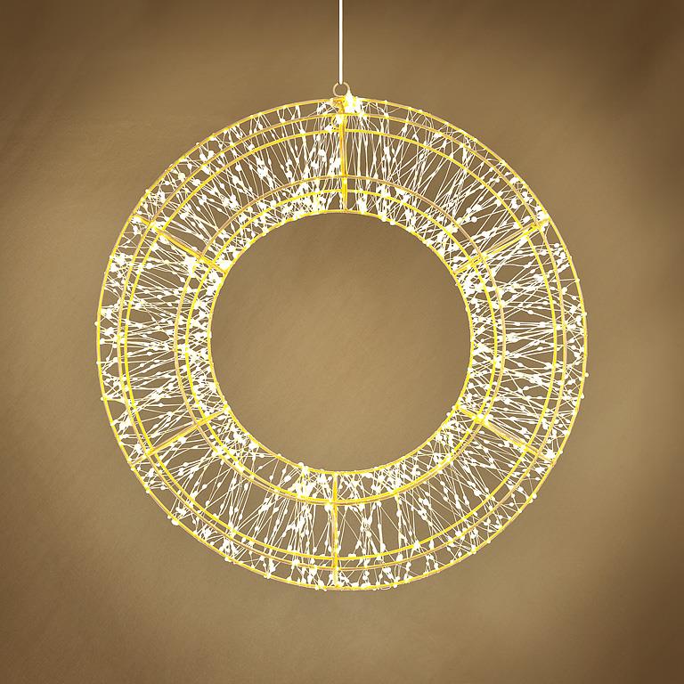 Elevate your holiday decor with our Medium 1800 Light Micro LED Wreath. This modern wire wreath combines a classic design with a luminous display of mini lights. Measuring 23 inches in diameter, it's the perfect complement for your festive celebrations. Suitable for indoor and outdoor use. Features an 6 hour timer. Create a magical and inviting atmosphere with this stunning and luminous wreath.
