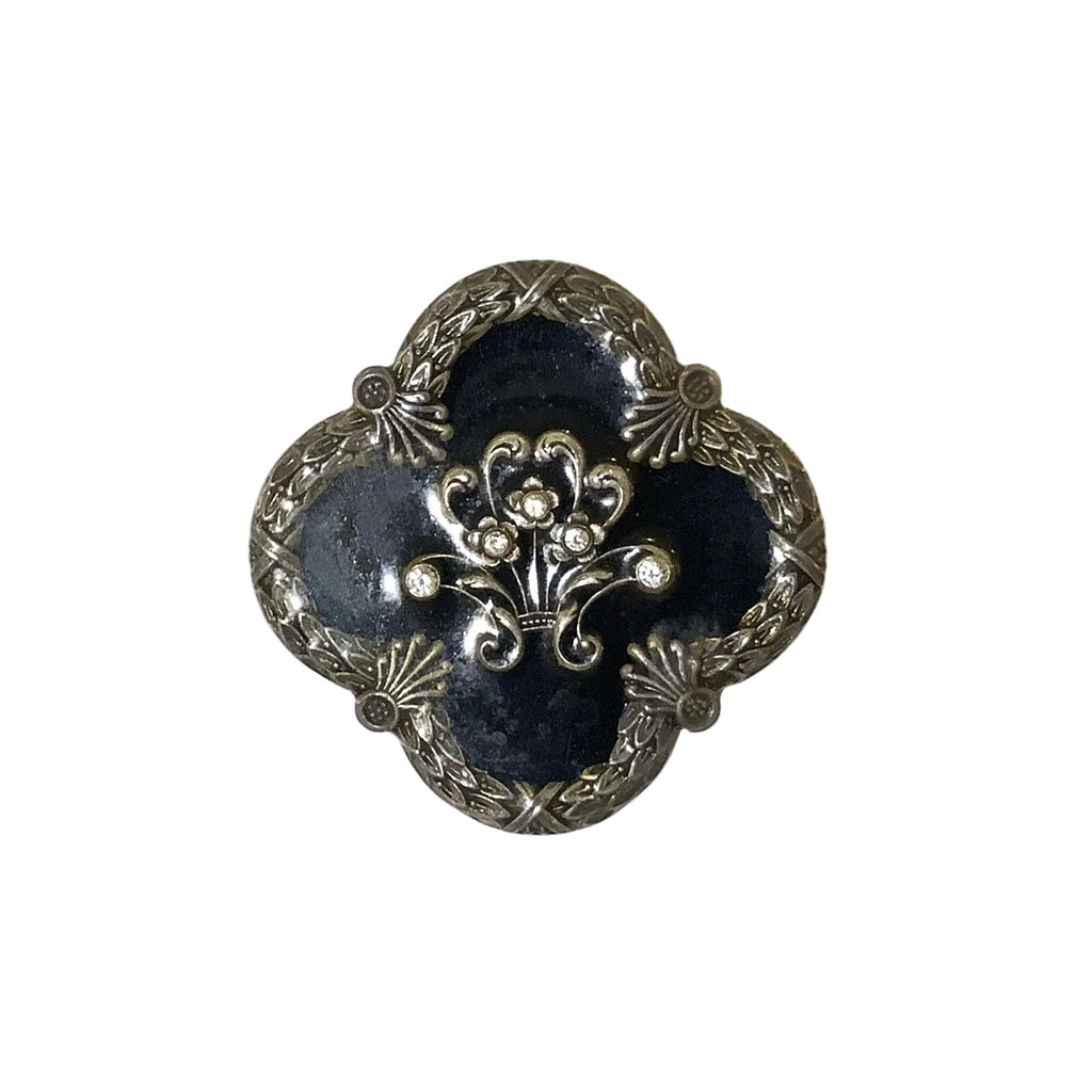 Indulge in timeless elegance with our Vintage Black Brooch by Catherine Popesco. This exquisite piece boasts a black enamel background and a striking silver-toned floral design, accented with sparkling Swarovski crystals. A sophisticated addition to any accessory collection.