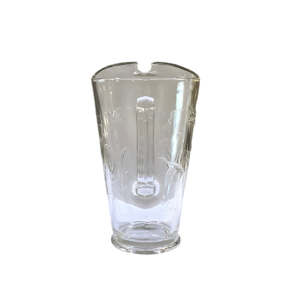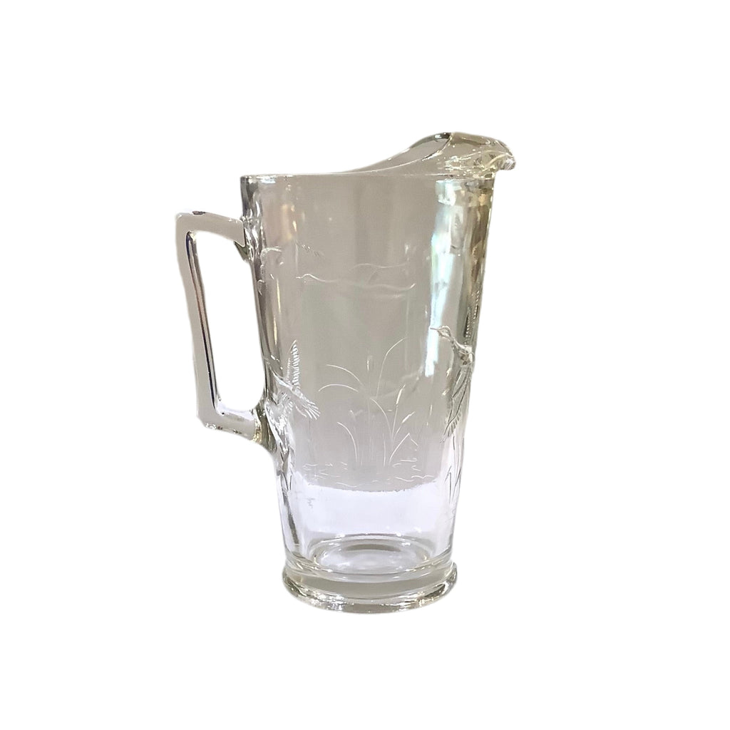 Elevate your dining experience with our Vintage Glass Pitcher. The exquisite design, adorned with geese and bulrushes, adds a touch of sophistication to any table setting. This pitcher remains a timeless and elegant addition to your collection.