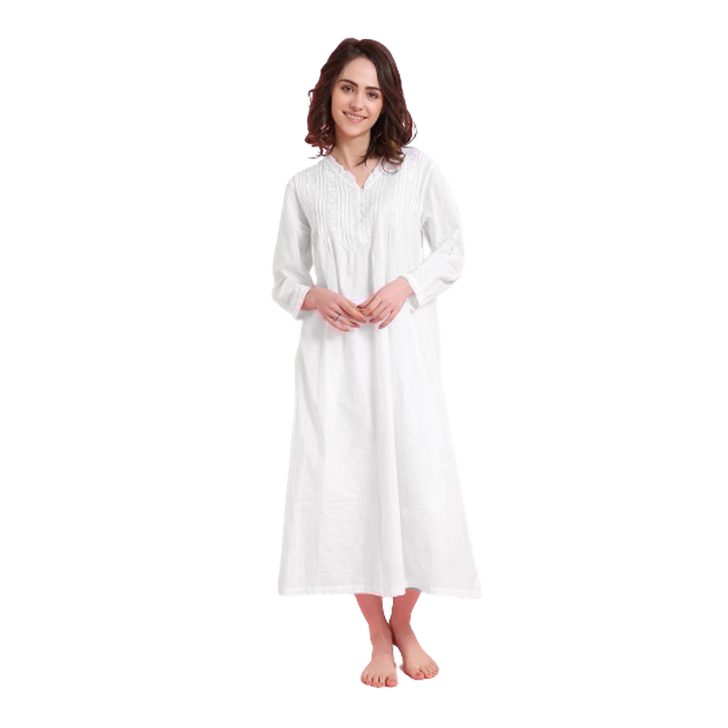 Our fine cotton sleeveless is perfect for those warm nights. Beautifully enhanced with fine embroidery, detailed neckline and buttoned neckline.