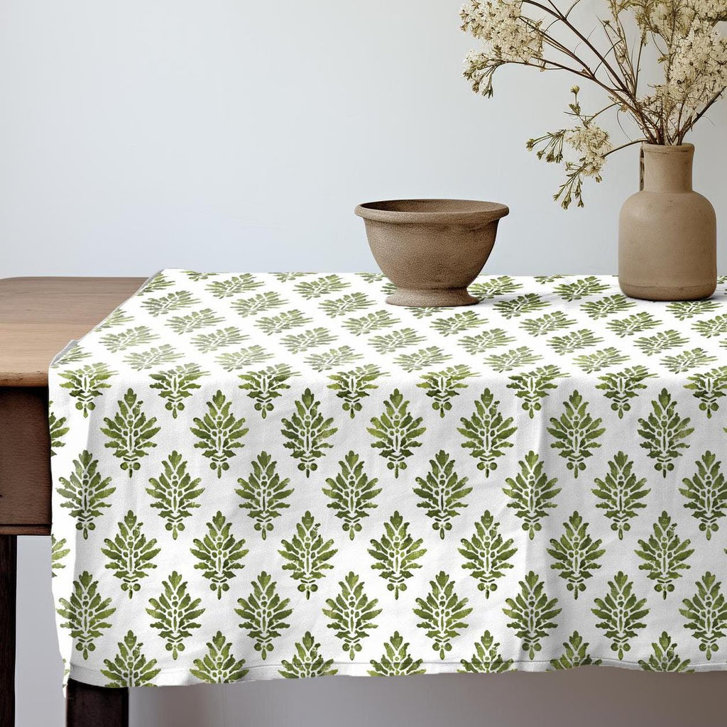 Our classic green block stamped printed linen tablecloth is pre washed, making it very soft and pleasant both to touch and eye.