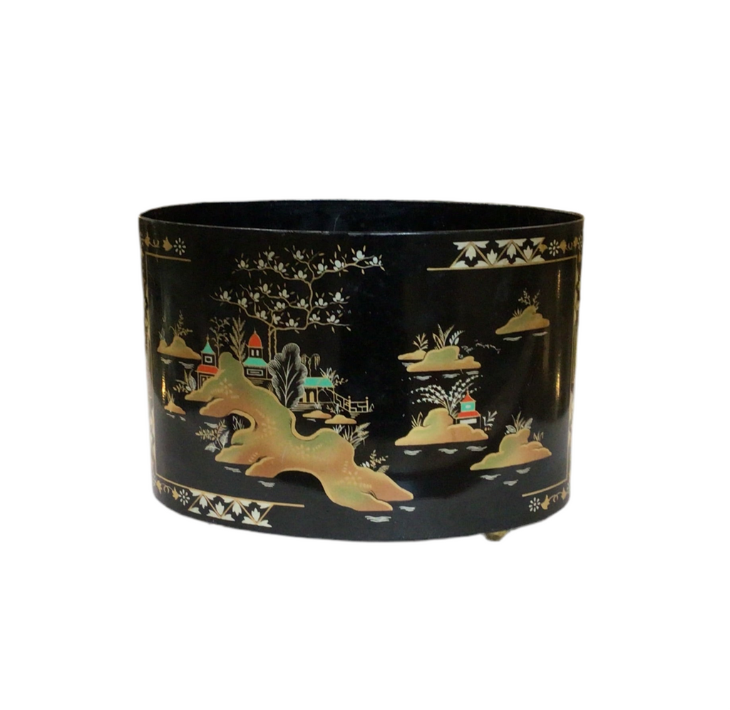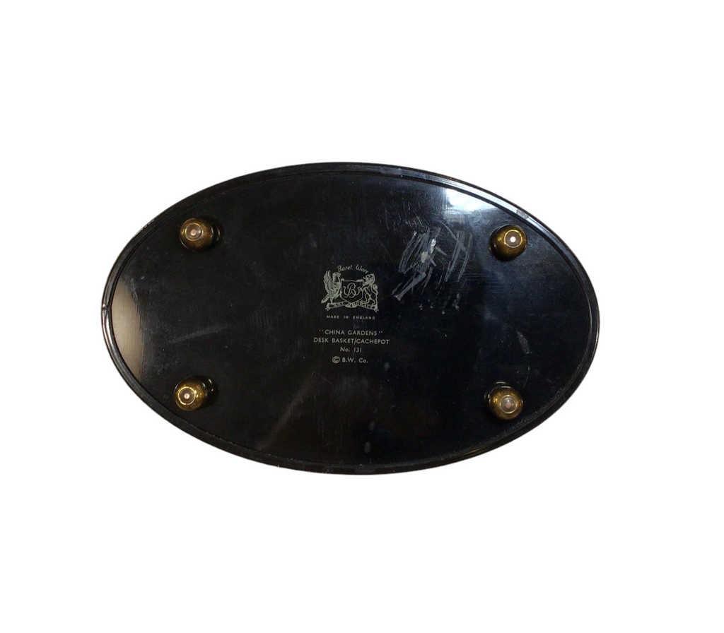 Indulge in a touch of vintage elegance with our Vintage Footed Desk Cachepot from England. The exquisite "China Gardens" design adorns this desk accessory, adding a touch of sophistication to your workspace. Display your pens and stationery in style or fill with your favourite potted plant.
