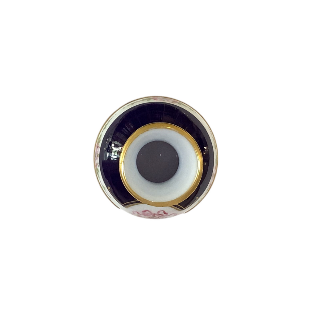 Add a touch of elegance to your home with our Vintage Limoges French Navy Vase. Crafted with intricate floral accents, our vase will bring a touch of luxury to any room. The deep navy and gold colors exude sophistication and style, making it a perfect addition to a curated art, literature, or fashion-inspired decor.