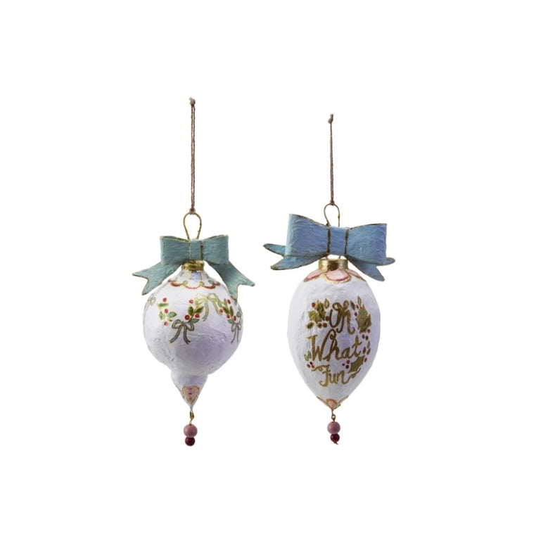 10"H - 12"H Hand-Painted Paper Mache Ornament w/ Bows