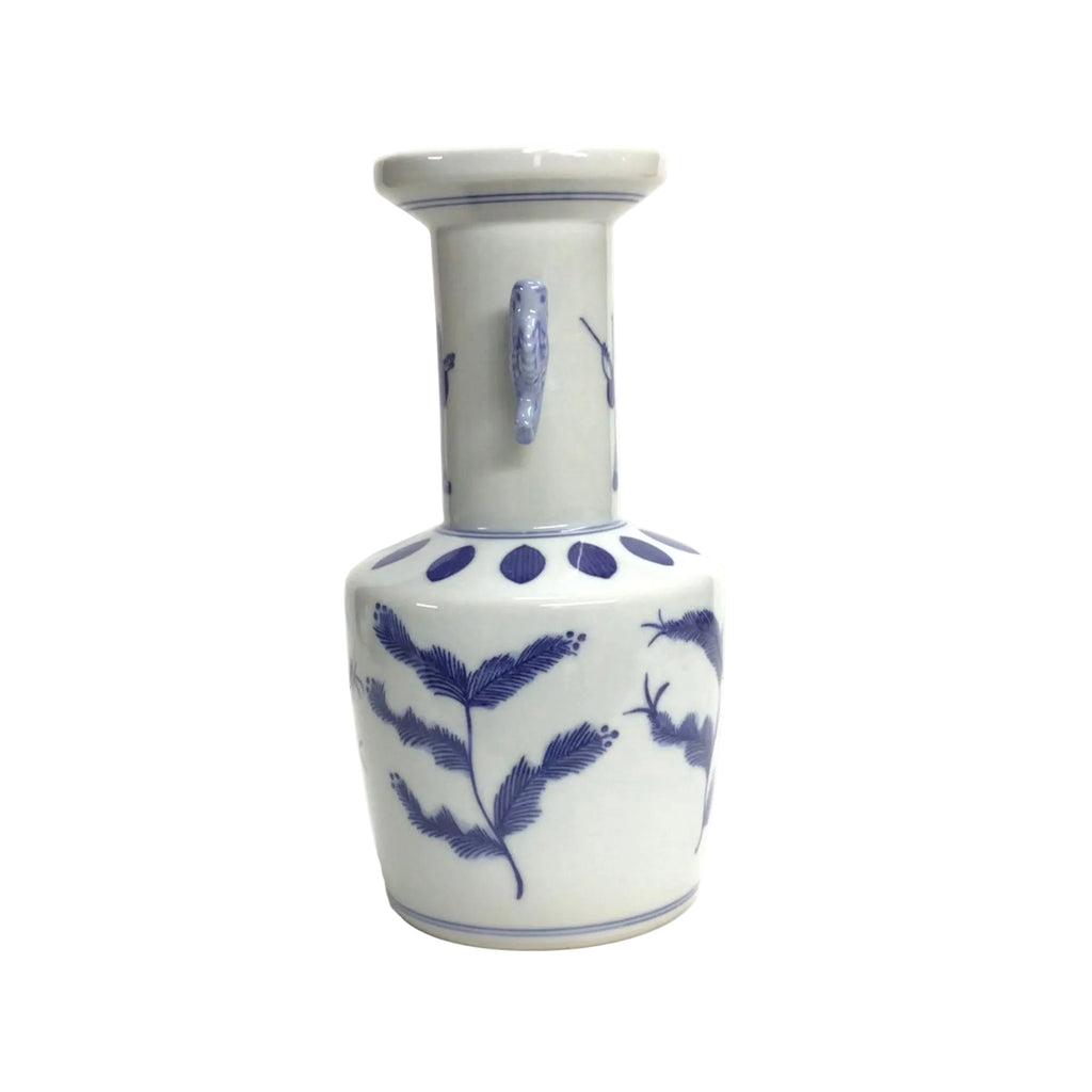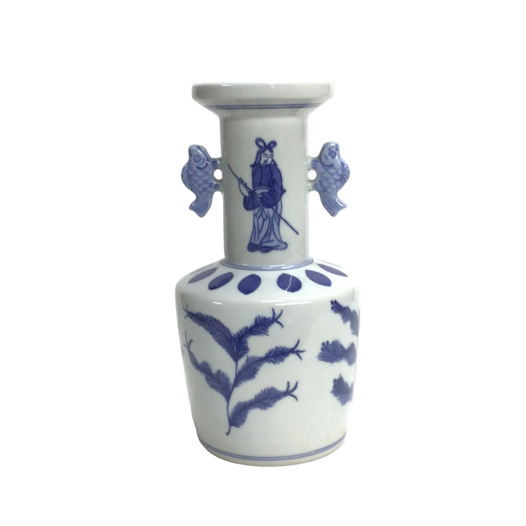 Vintage Oriental Blue & White Porcelain Vase w/ Fish Handles
